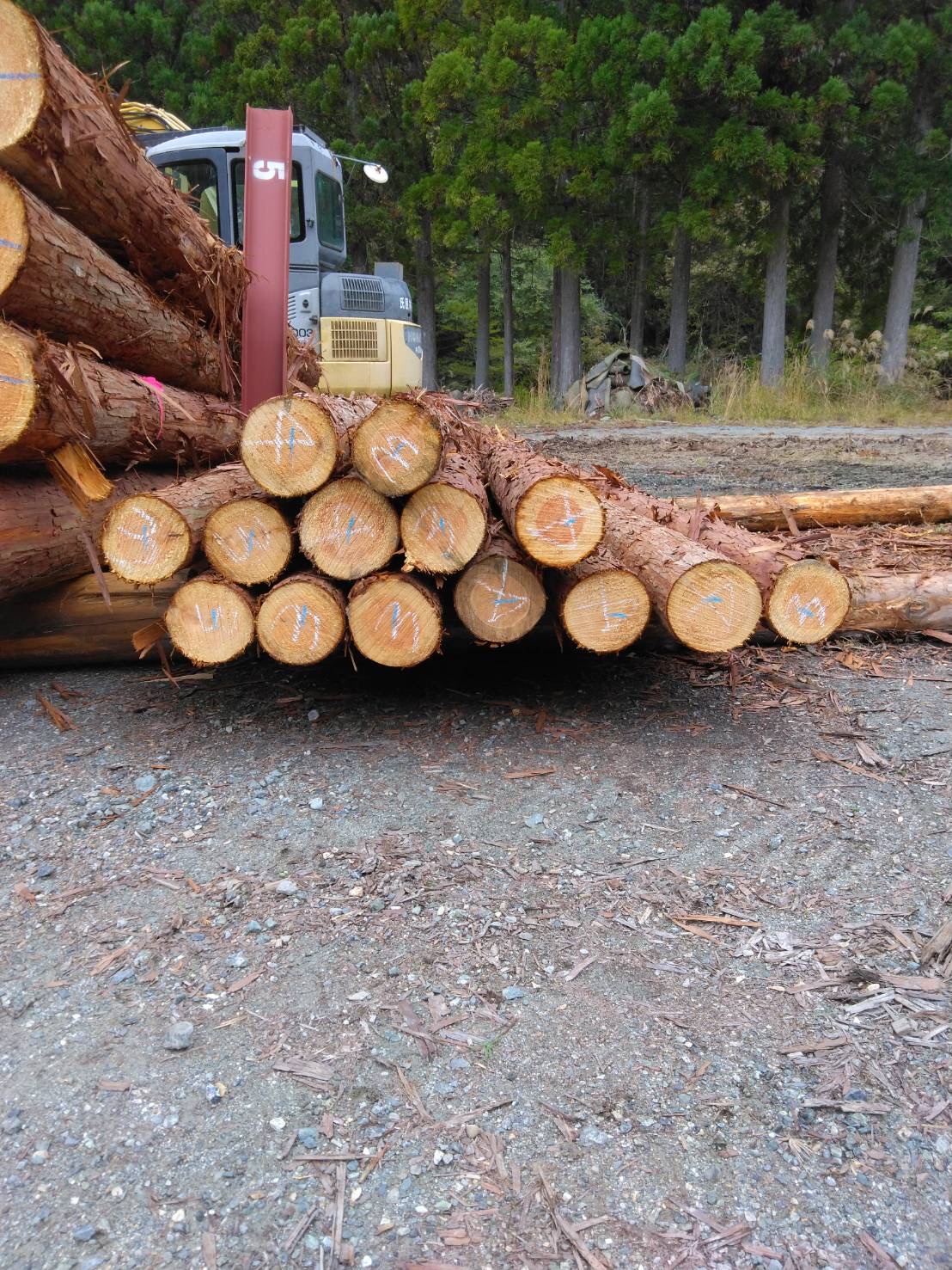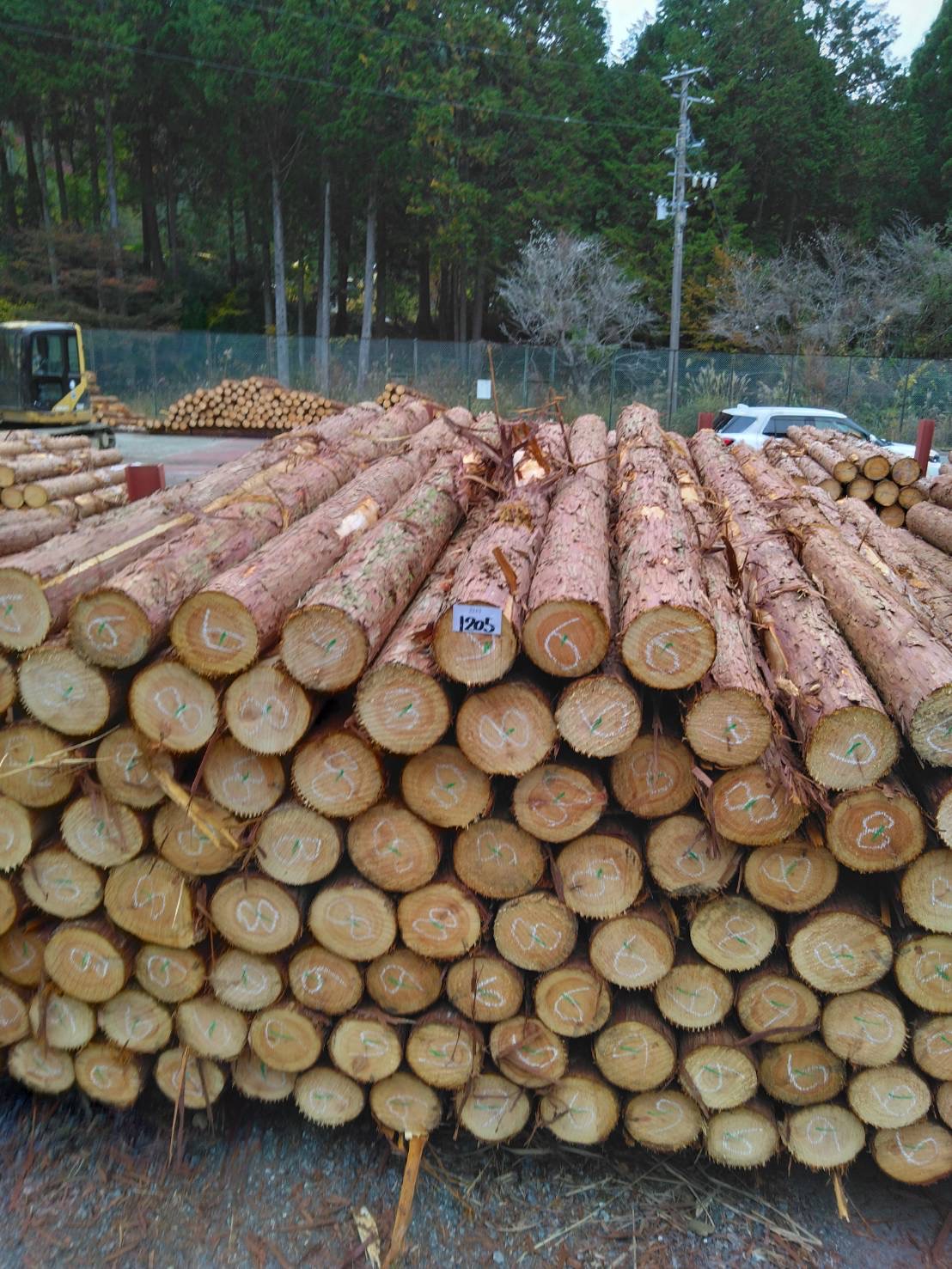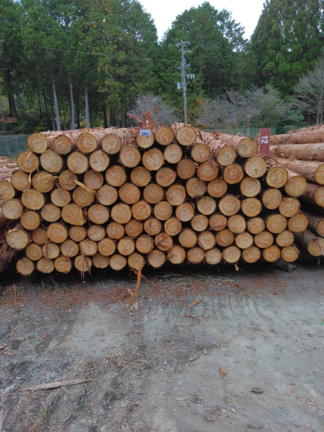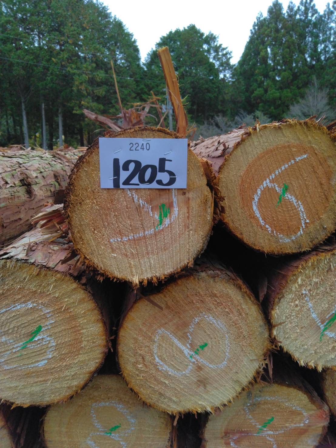 以下に2240回市に出品予定の材の下見表と、椪の様子を添付いたします。