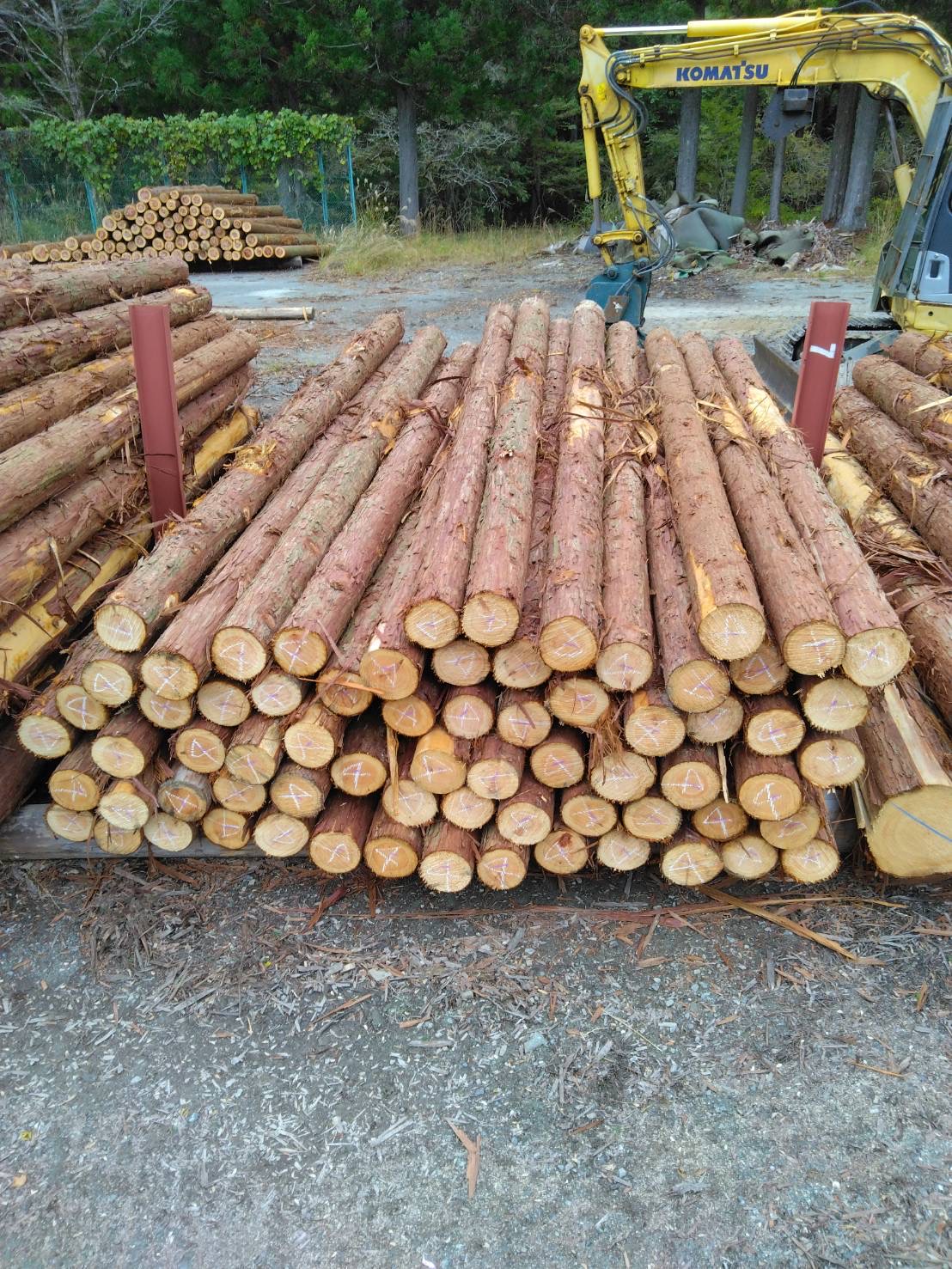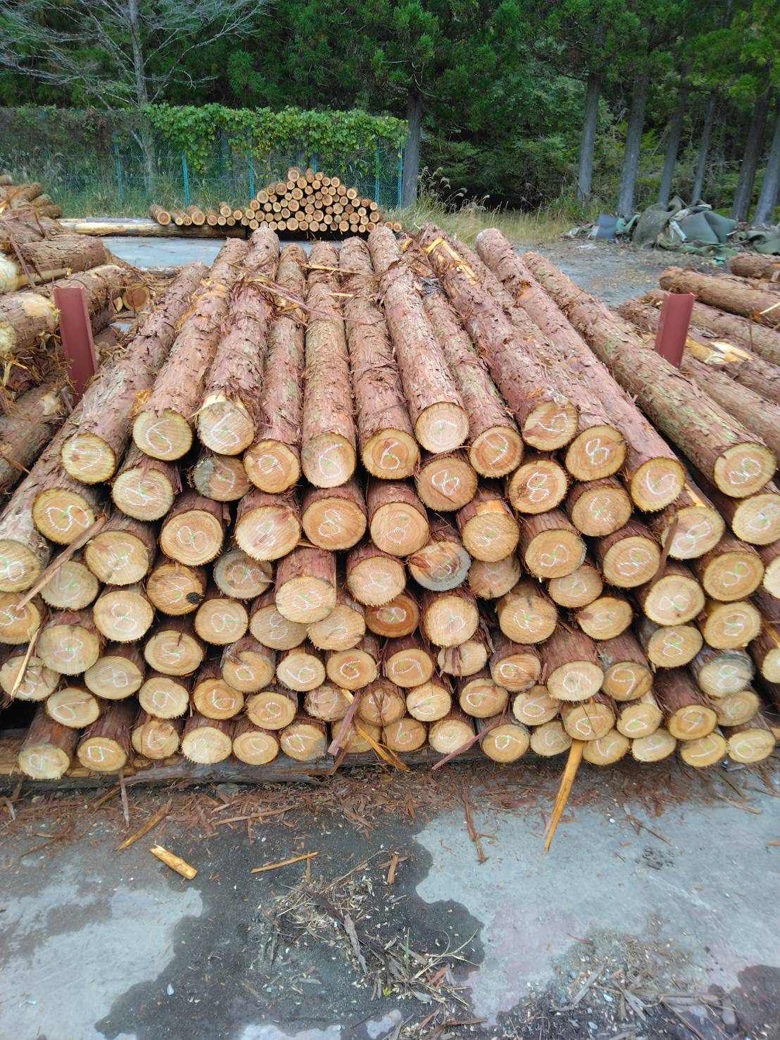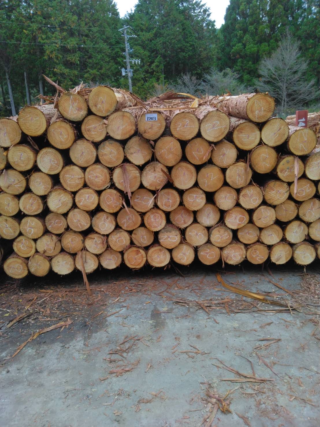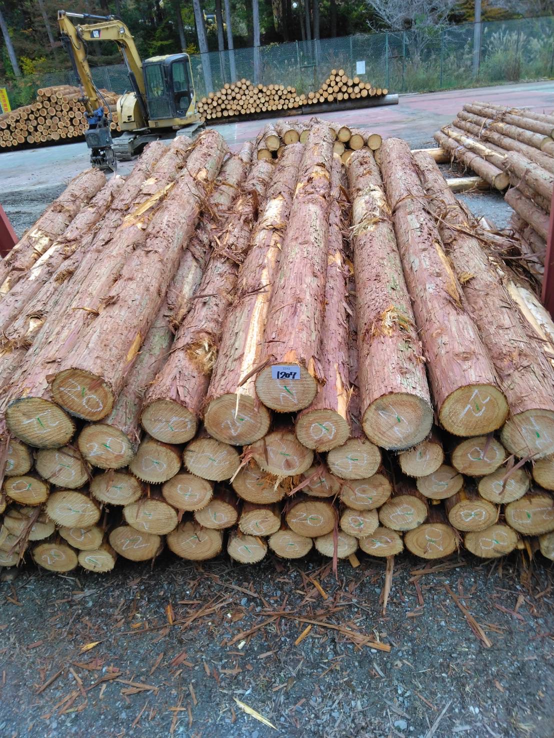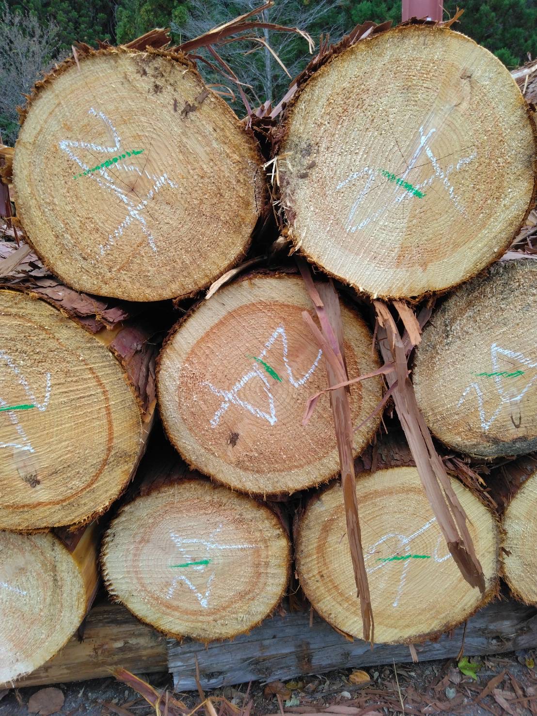 以下に2240回市に出品予定の材の下見表と、椪の様子を添付いたします。