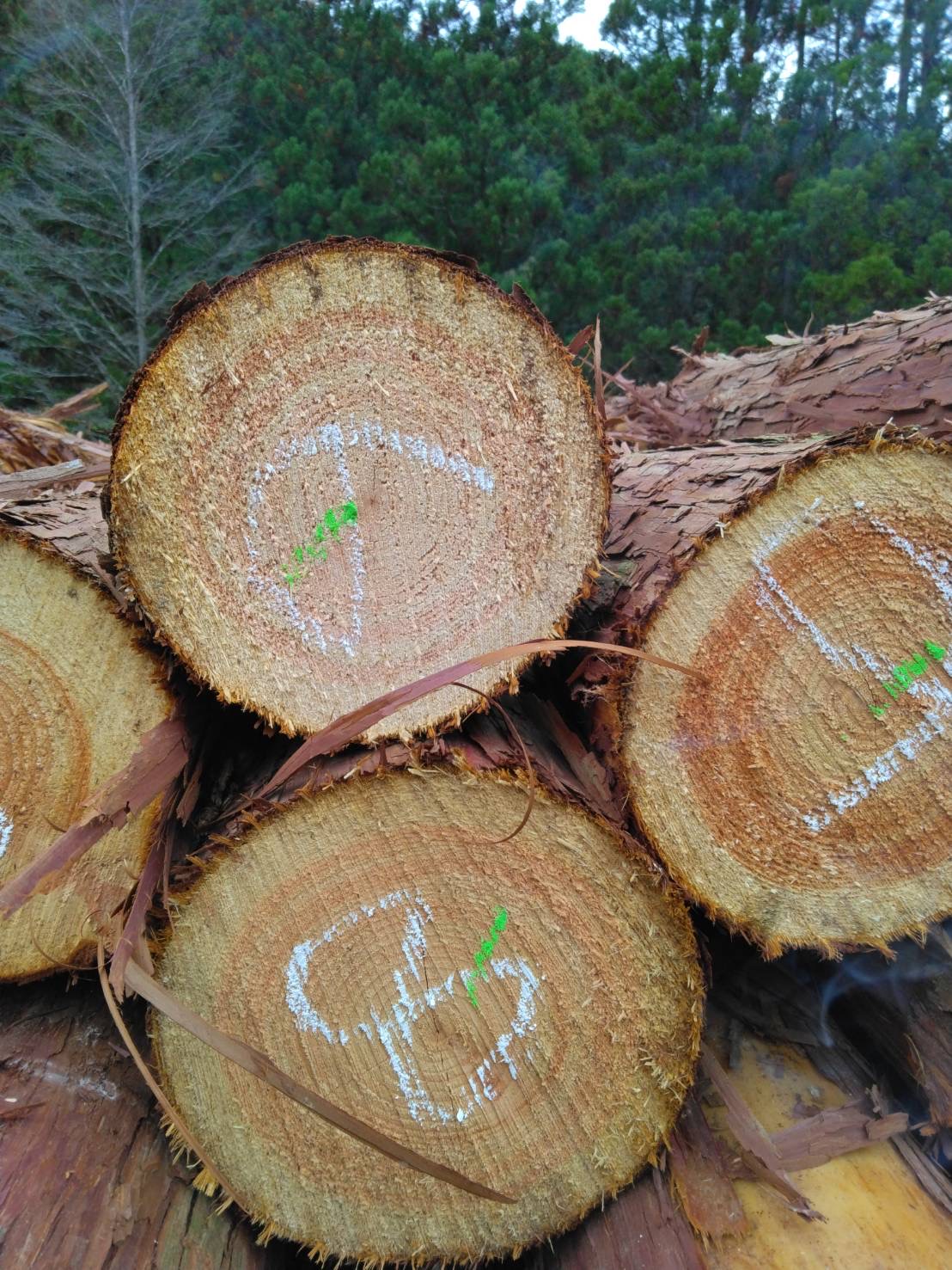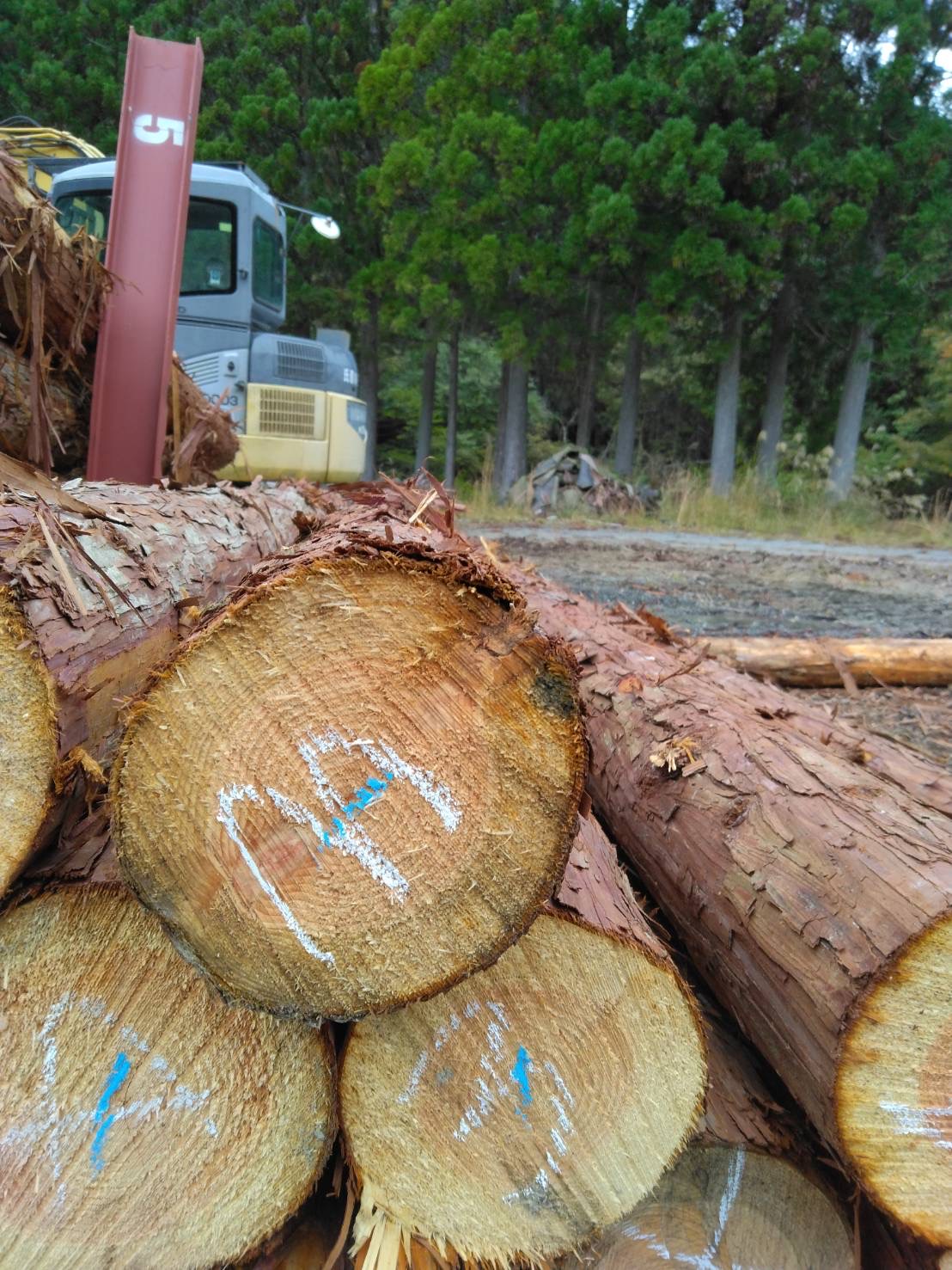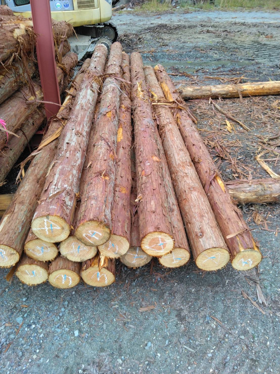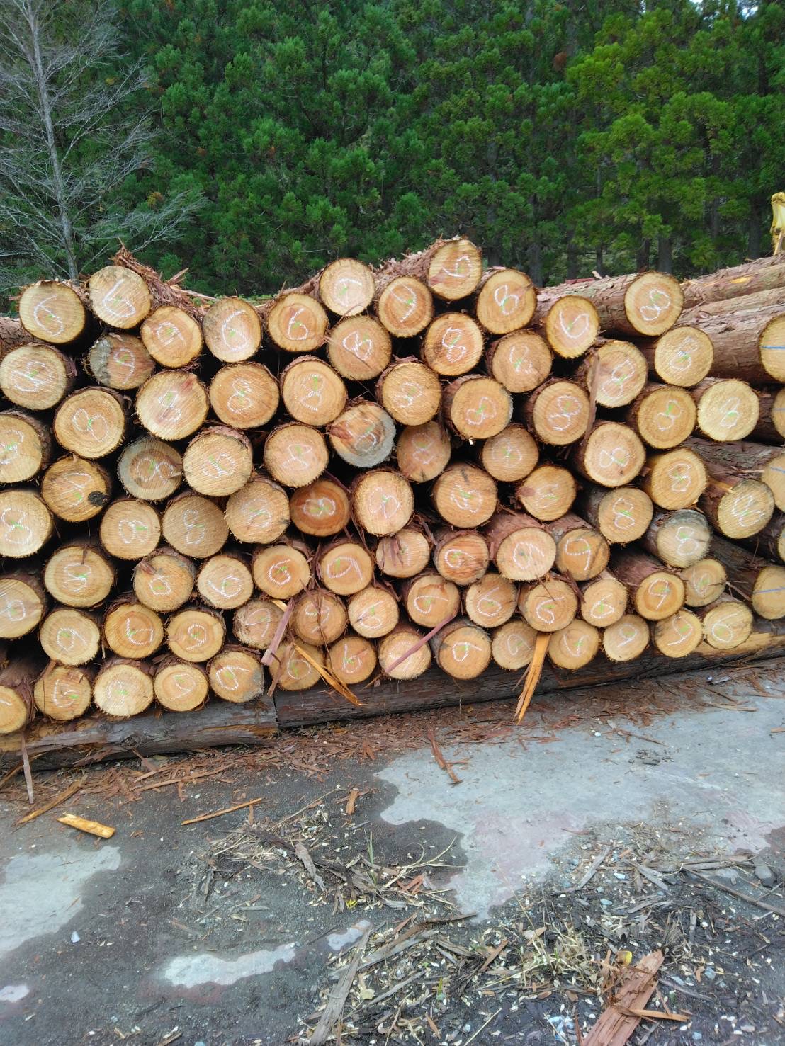 以下に2240回市に出品予定の材の下見表と、椪の様子を添付いたします。